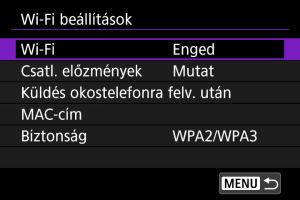 A Wi-Fi-n keresztül csatlakoztatott eszközök csatlakozási előzményeinek megjelenítéséhez a(z) [Mutat] és a(z) [Ne jelenjen meg] lehetőség közül választhat.