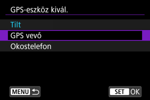A(z) [GPS-eszköz kivál.] menüpontban válassza a(z) [GPS vevő] lehetőséget.