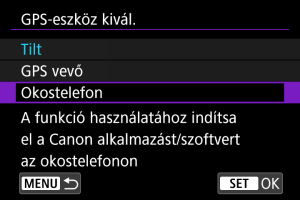 A(z) [GPS-eszköz kivál.] menüpontban válassza a(z) [Okostelefon] lehetőséget.