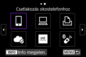 : Wi-Fi/Bluetooth kapcsolat] lehetőséget.