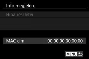 Ellenőrizheti a hiba részleteit, valamint a fényképezőgép MAC-címét.