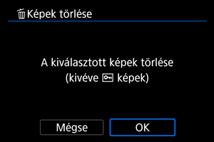 Egyenként kiválaszthatja és törölheti a felesleges képeket, illetve egyetlen lépésben is törölheti az összeset. A védett képek () nem törlődnek.