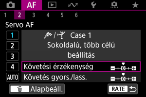 A(z) Case 1–Case 4 paramétereit ((1) Követési érzékenység és (2) Gyorsulás/lassulás követése) manuálisan is módosíthatja.