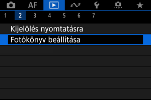 - Ne használja ezt a fényképezőgépet a fotókönyv-beállítások konfigurálására, ha a fényképek fotókönyv-beállításait más fényképezőgépen állította be. Ezzel ugyanis akaratlanul felülírhatja a fotókönyv összes beállítását.