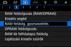 Kiválaszthatja a RAW-képek feldolgozásának típusát, amelyet végre tud majd hajtani a Gyorsvezérlés képernyőről.