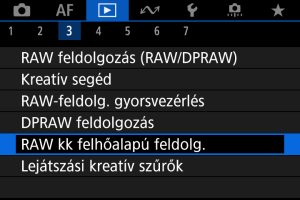 1. Válassza a(z) [Lejátszás: RAW kk felhőalapú feldolg.] lehetőséget.