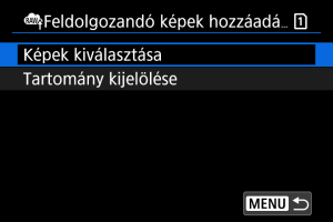 1. Válassza a(z) [Feldolgozandó képek hozzáadása] lehetőséget.