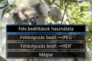 • A(z) [Feldolgozás beáll.→JPEG] vagy [Feldolgozás beáll.→HEIF] opció használata esetén válassza a(z) [Mentés és kilépés] (Mentés) lehetőséget.