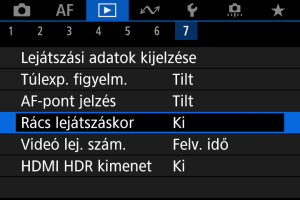 Egyképes megjelenítés esetén rács jeleníthető meg a megjelenített állóképeken a lejátszási képernyőjén. Ezzel a funkcióval kényelmesen ellenőrizheti a kép függőleges és vízszintes dőlésszögét és a kompozíciót.