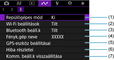 - Egyes menüelem nem konfigurálhatók, amikor a fényképezőgép interfészkábellel számítógéphez vagy más eszközökhöz van csatlakoztatva.