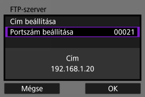 - A(z) [Portszám beállítása] normál esetben 00021 (FTP/FTPS esetén) vagy 00022 (SFTP esetén).