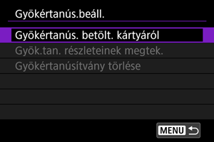 Válassza a(z) [Gyökértanús. betölt. kártyáról] lehetőséget.