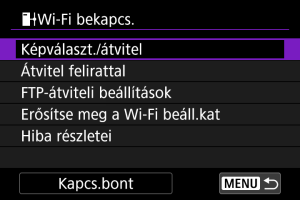 Sikertelen átvitel esetén a(z) Wi-Fi ikon villogni kezd. Ebben az esetben a(z) gomb megnyomása és a(z) [