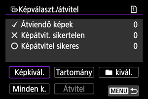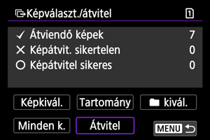- Az átviteli eseménynapló törlését követően a(z) [Át nem vitt képek kiválasztása] opciót választva ismét átviheti a kártyán lévő összes képet.