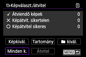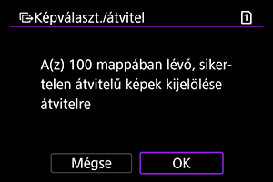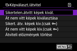 - A(z) [Sikertelen.átvitt képek kivál.] lehetőséggel a kiválasztott mappa minden olyan képét kijelölheti, amelyek átvitele korábban sikertelen volt.