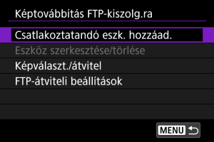 Képtovábbítás FTP-kiszolg.ra] lehetőséget.