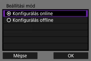 - Ha nem szeretné elvégezni a hozzáférési pont csatlakoztatására vonatkozó beállítások konfigurálását, válassza a(z) [Konfigurálás offline] lehetőséget, és folytassa a 6. lépéssel az FTP-szerver beállításainak konfigurálásához. Ezt a lehetőséget távoli helyen lévő hozzáférési pont megadásakor válassza.