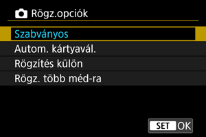 Ha a(z) [ Rögz.opciók] beállítás a(z) [Rögzítés külön] vagy [Rögz. több méd-ra] lehetőségre, vagy a(z) [