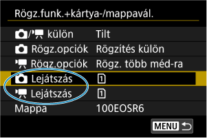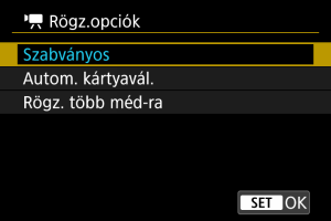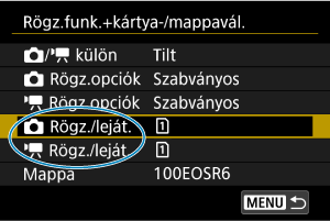 Rögz.opciók] beállítás a(z) [Szabványos] vagy [Autom. kártyavál.] lehetőségre van állítva, kiválaszthatja a rögzítéshez és lejátszáshoz használt kártyát.