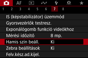 A következő funkciók nem elérhetők el, ha a fényképezőgép hamis színek használatára van állítva.