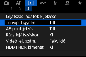 Megadhatja, hogy villogó kijelzésként jelenjenek meg a túlexponált részletek a lejátszási képernyőjén. Ha részletesebb gradációt szeretne elérni a villogó területeken, ahol élethű színeket szeretne, állítsa az expozíciókompenzációt negatív értékre, és készítsen új felvételt.
