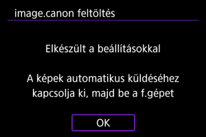 Miután a fényképezőgép elindul (vagy visszatér az automatikus kikapcsolásból), a képek automatikusan feltöltődnek az image.canon webhelyre. Az image.canon webhelyre feltöltött képek letölthetők számítógépre, és más webszolgáltatásokba is továbbíthatók.
