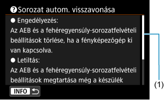 gomb megnyomásával megjelenítheti az adott funkció leírását. A Súgó bezárásához ismét nyomja meg a gombot. Ha a képernyő jobb oldalán egy görgetősáv (1) jelenik meg, a görgetéshez használja a(z)