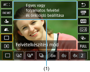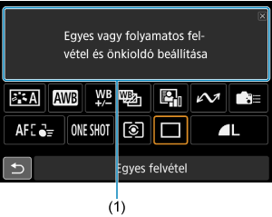 A Gyorsvezérlés használatakor megjelenítheti a funkciók és elemek rövid leírását.
