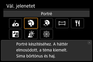 A(z) [] (Portré) móddal elmoshatja a hátteret, és kiemelheti a fényképezett személyt. Egyúttal jobban lágyítja a bőrtónusokat és a haj megjelenését.
