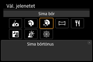 A(z) [Fényerő] és a(z) [Sima bőr effektus] öt fokozatban állítható be. A(z) [Háttér] beállítással megadhatja a háttér elmosódottságának mértékét.