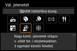 - A HDR-háttérfény-kompenzáció nem mindig hatásos a hátulról erősen megvilágított jelenetek vagy a magas kontrasztú jelenetek esetén.