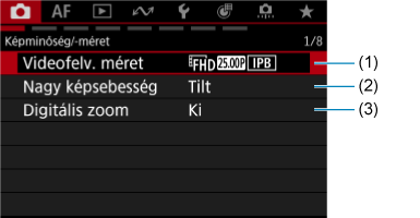 - (1) Videofelv. méret