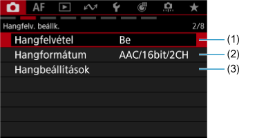 - (1) Hangfelvétel