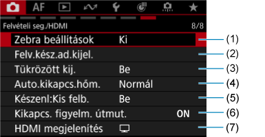 - (7) HDMI megjelenítés
