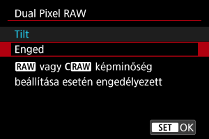 - A készülék Dual Pixel adatokat tartalmazó RAW-képet (Dual Pixel RAW-képet) fog készíteni.