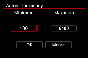 ISO [AUTO] esetén a maximális ISO-érzékenység határa között állítható be.