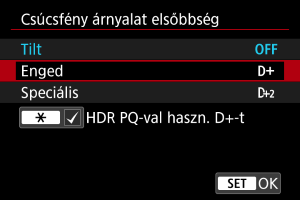 : Csúcsfény árnyalat elsőbbség] beállítást [Enged] lehetőségre állítja, és nem módosítható, ha a(z) [