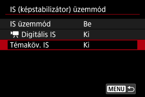 : IS (képstabilizátor) üzemmód] (, ) lehetőséget.