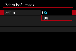 Videófelvétel előtt vagy közben az egyszerűbb expozíció-beállítás érdekében a meghatározott fényerejű képterületek felett vagy körül vonalas mintát jeleníthet meg.