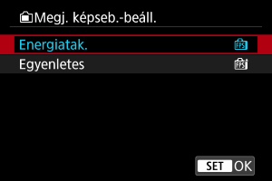 Ezzel az opcióval beállíthatja állóképek rögzítésekor a felvételi képernyő megjelenítési képfrekvenciáját. Kiválaszthatja, hogy energiatakarékos módot vagy nagy képfrekvenciát szeretne-e használni a megjelenítéshez.