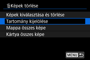 Miközben a képeket nézegeti az indexképes megjelenítésben, egyszerre kijelölheti egy tartomány első és utolsó képét törlésre.