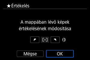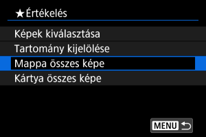 : Értékelés] menüpontban a(z) [Mappa összes képe] vagy a(z) [Kártya összes képe] lehetőséget választja, a mappában vagy a kártyán lévő összes kép értékelést kap.