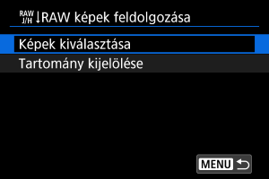 Meghatározott képarányú JPEG- vagy HEIF-képek jönnek létre, ha olyan RAW-képeket dolgoz fel, amelyeknél a(z) [: