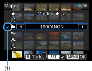 A kiválasztott (védelmi) feltételnek megfelelő képek megjelenítése. Fájl típusa (1)