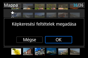 Lehetőség van arra, hogy a megjelenítendő képeket meghatározott keresési feltételek szerint szűrje. Miután megadta a képkeresési beállításokat, megjelenítheti csak a megtalált képeket. Az ilyen módon szűrt képeket védelemmel vagy értékeléssel láthatja el, diavetítéssel lejátszhatja, törölheti, illetve egyéb műveleteket alkalmazhat azokon.