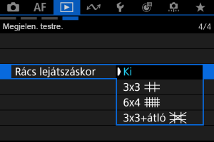 : Rács lejátszáskor] beállítást [Ki] opciótól eltérő lehetőségre állítja.