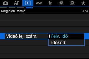 : Időkód] menüpont [Videó lej. szám.] beállítása a(z) [