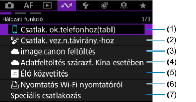 - Egyes menüelem nem konfigurálhatók, amikor a videókamera interfészkábellel számítógéphez vagy más eszközökhöz van csatlakoztatva.
