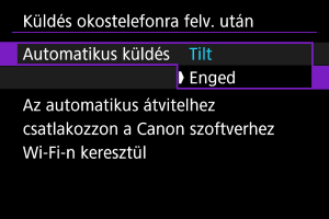Felvételeit automatikusan is elküldheti okostelefonjára. A lépések végrehajtása előtt győződjön meg róla, hogy nem szűnt-e meg a videókamera és az okostelefon Wi-Fi-kapcsolata.