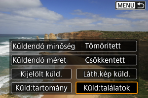Ezzel a funkcióval egyszerre küldheti el az összes olyan képet, amely megfelel a(z) [: Képkeresési feltételek megad.] funkciónál beállított feltételeknek. A(z) [